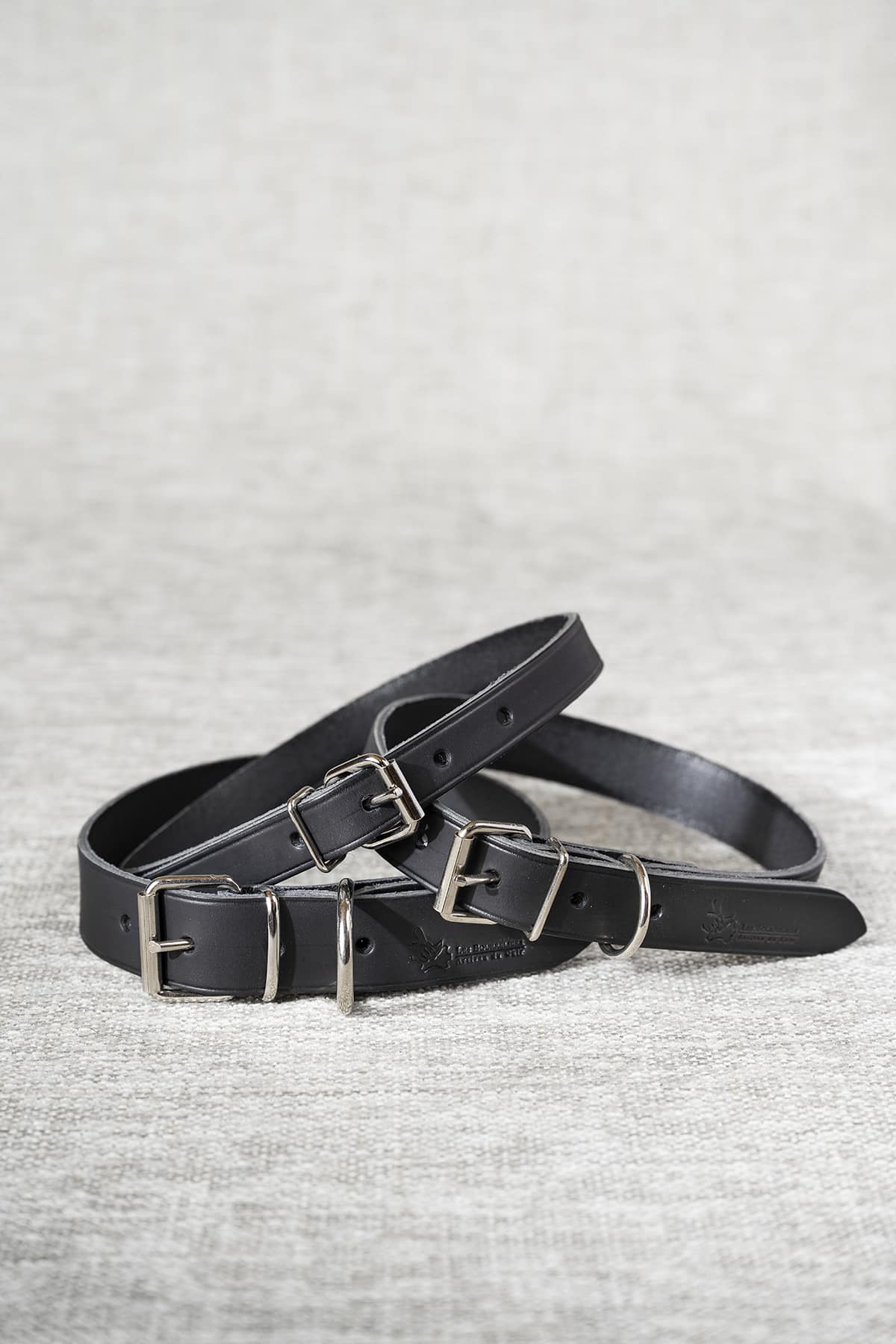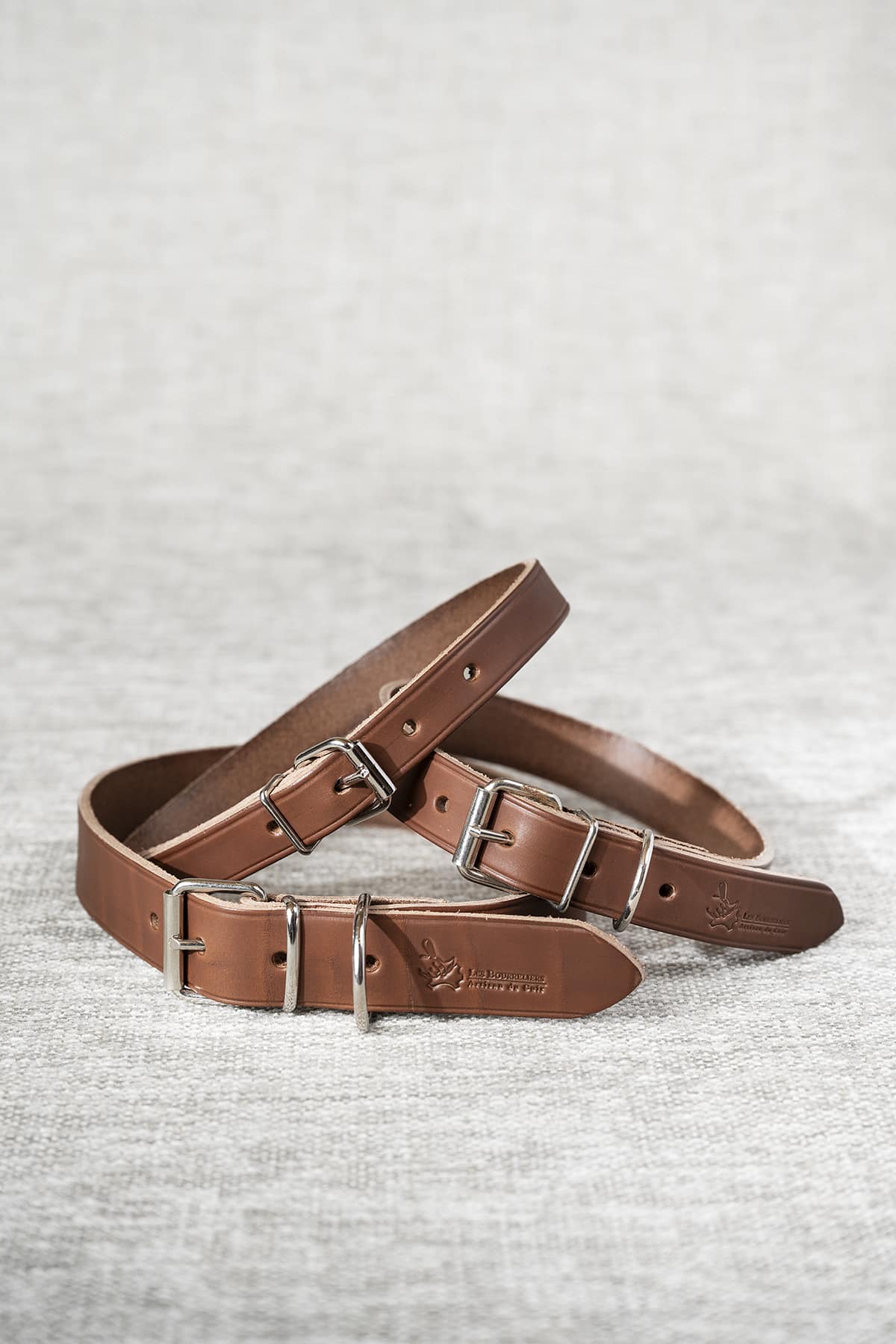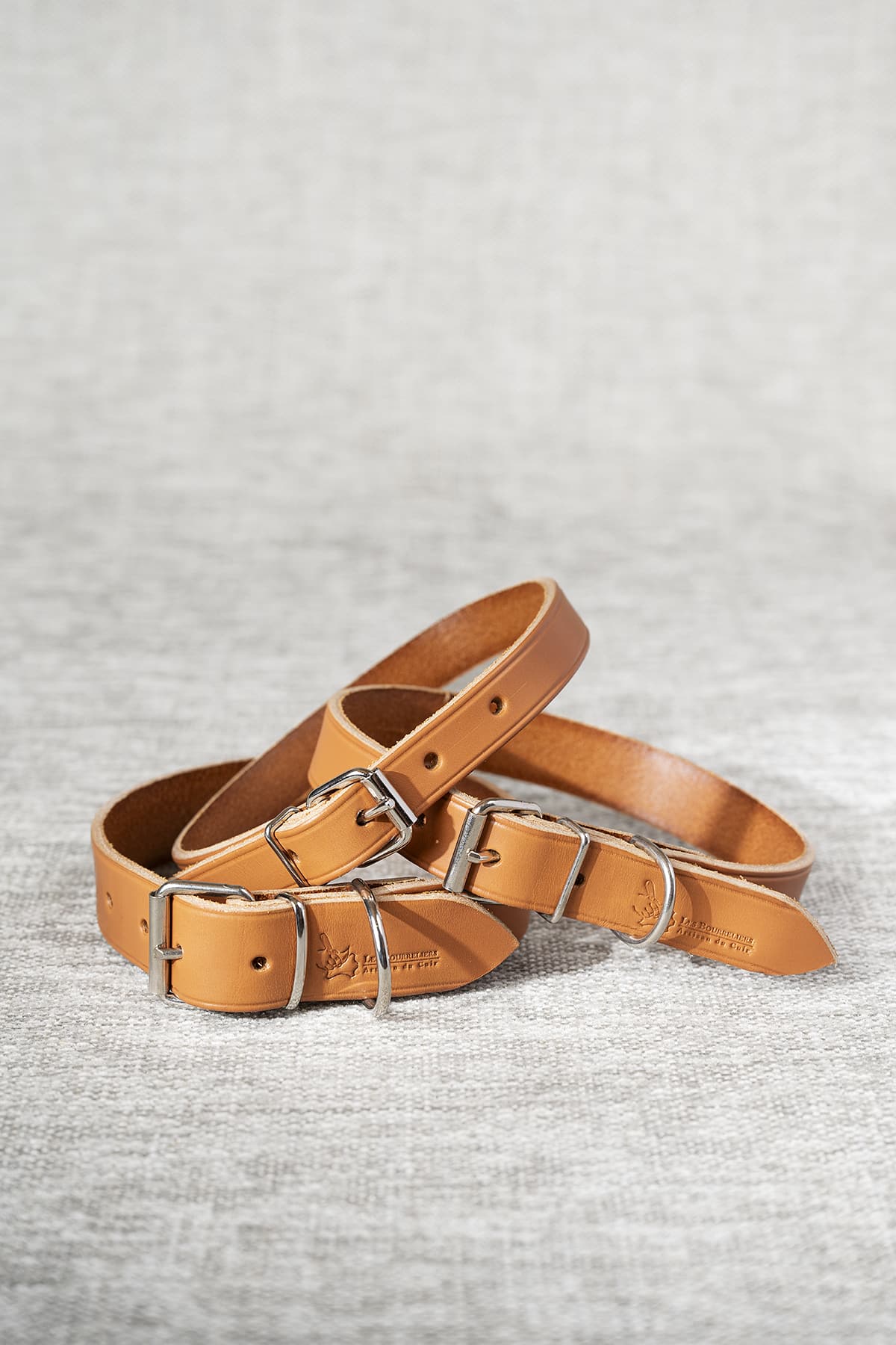 Collier de chien en cuir, tannage végétal, disponible en 3 coloris et 3 largeurs: 2 cm, 2.5 cm, 3 cm.