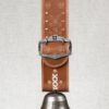 Un montage savoyard avec sa couture main en lanière parcheminée, le renfort intérieur et la boucle sont fixés avec des rivets en cuivre et rondelles laiton pour une plus grande solidité.