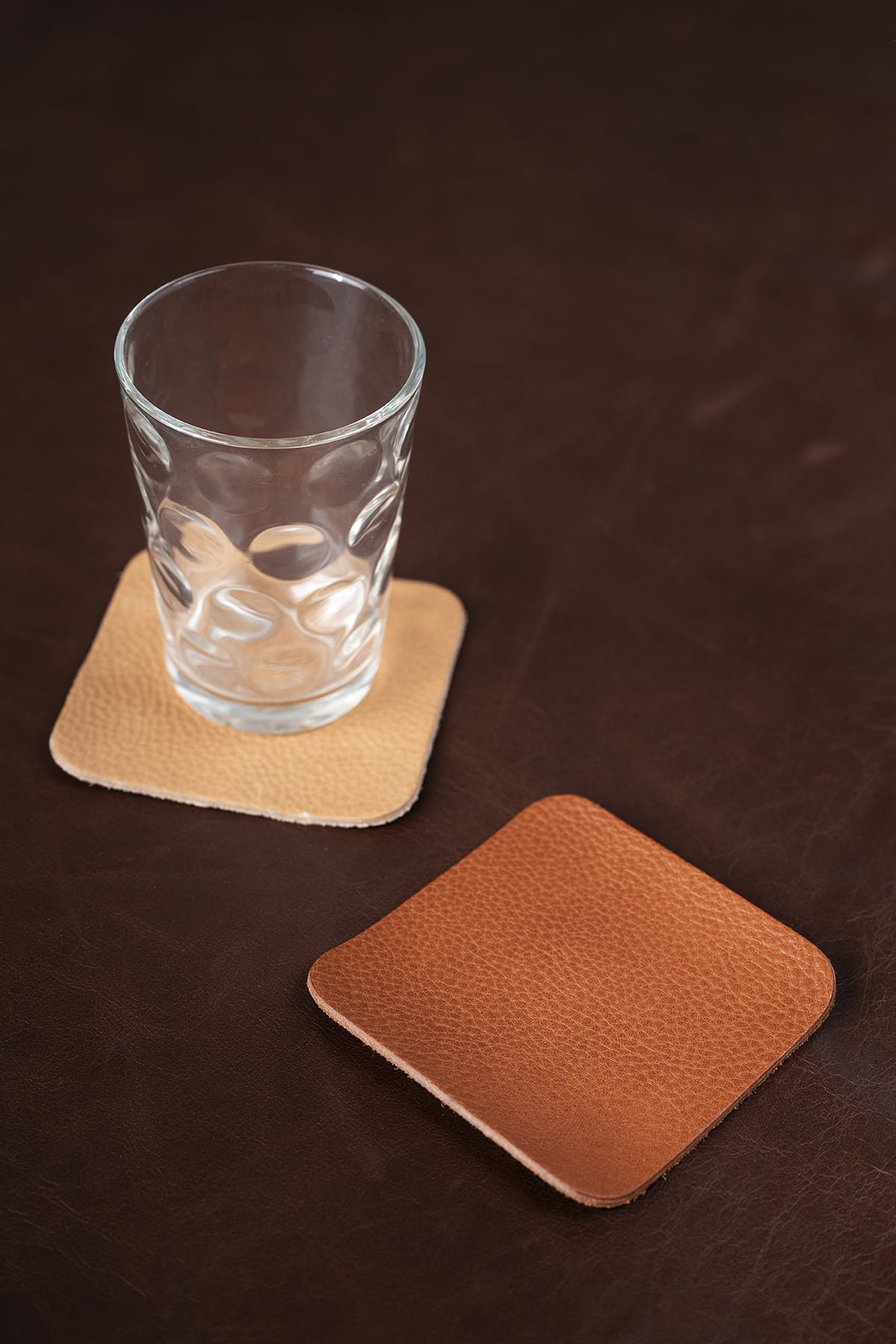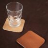 Sous verre en cuir disponible en marron clair et cognac, en rond et carré.