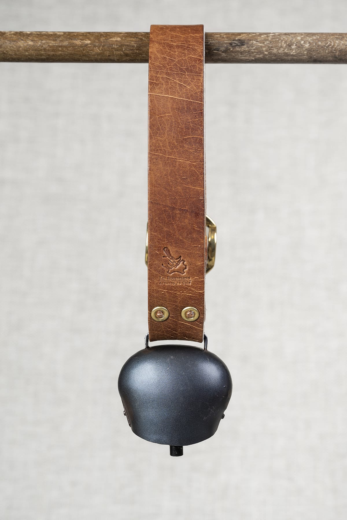 La boucle et la sonnette sont fixées avec des rivets cuivre et rondelles laiton pour une plus grande solidité.